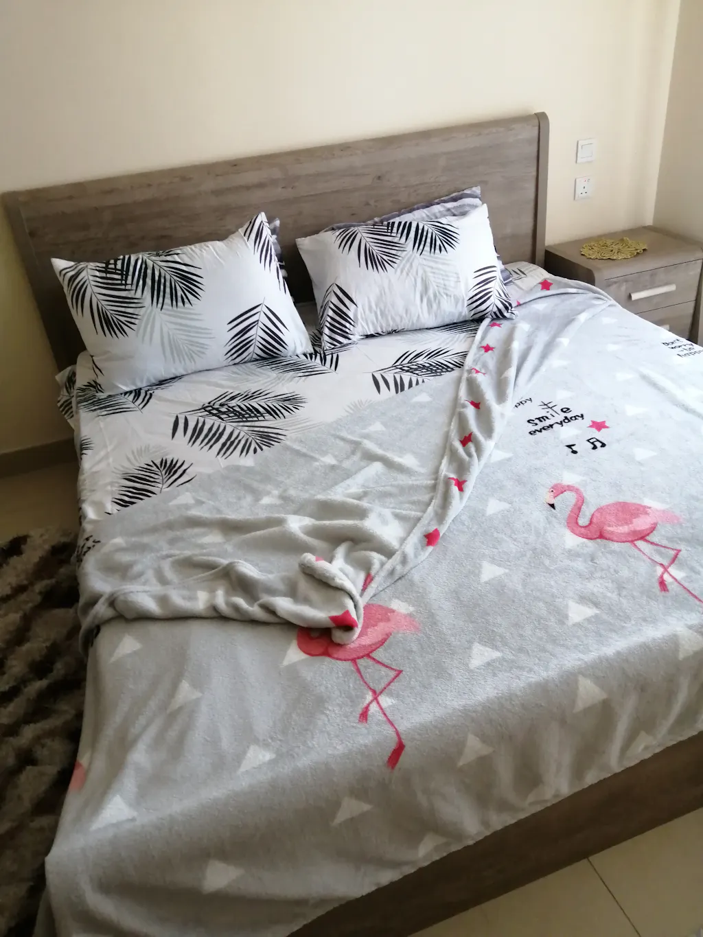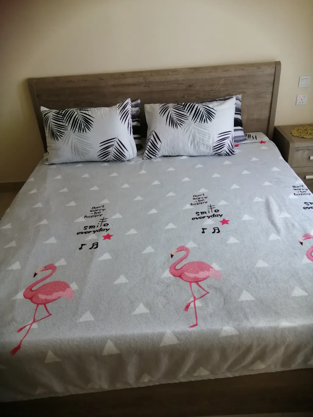 King Size 6 Pcs Washable Cotton Bedding Set. Super Soft Wrinkles Fabric, Plain Lavender Color. Great material very soft and they fit like a glove.