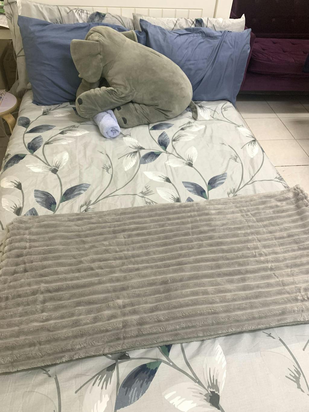 Material: Outer Fabric: 100% Microfiber 85Gsm Super soft. Filling: Siliconized Fiber. Weight 1.2kg.