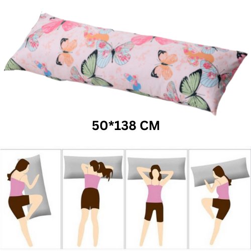 1 Piece Long Body Pillow Case, Pink Color Butterfly Design.
